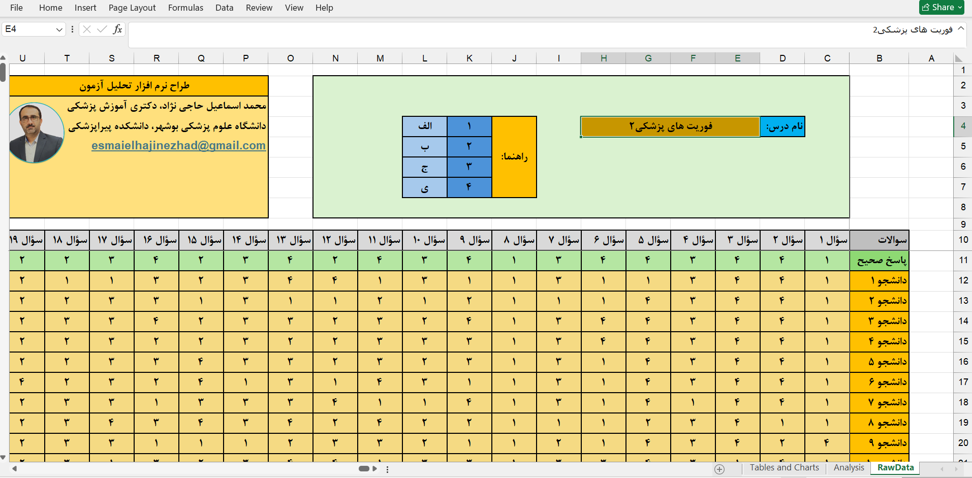 این نرمافزار اکسل، ابزاری ساده اما قدرتمند برای ارزیابی علمی کیفیت آزمون و تحلیل دقیق عملکرد فراگیران است و به تصمیمگیری آموزشی مبتنی بر داده کمک میکند.